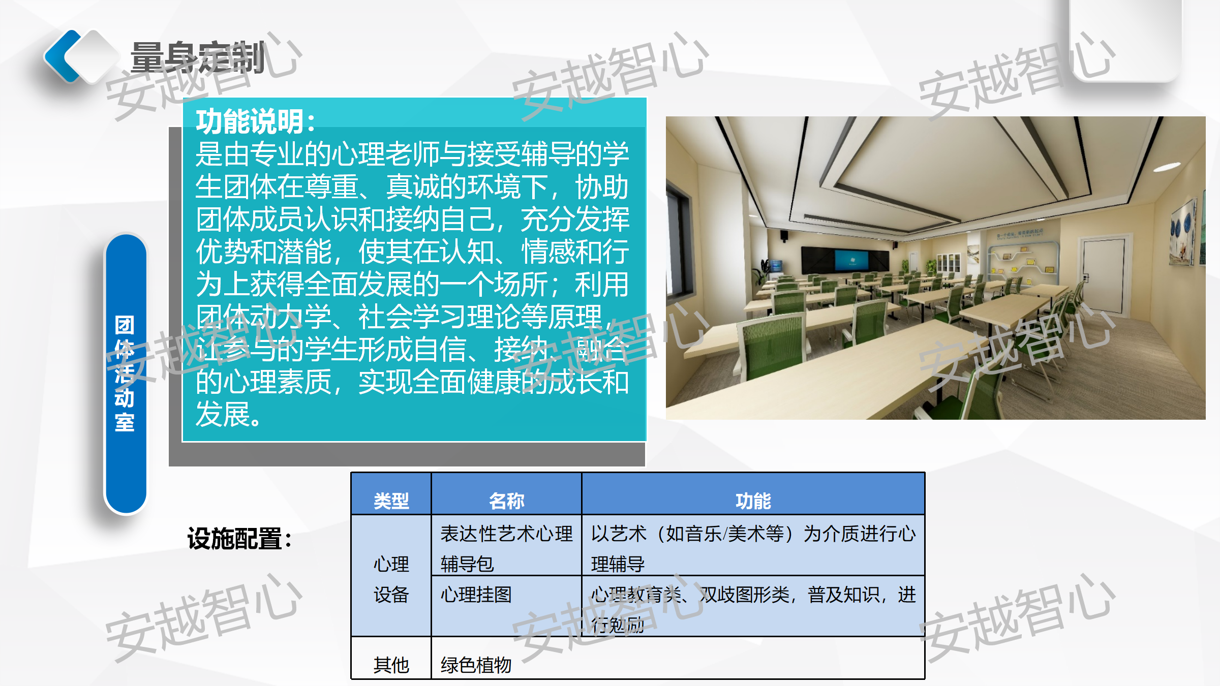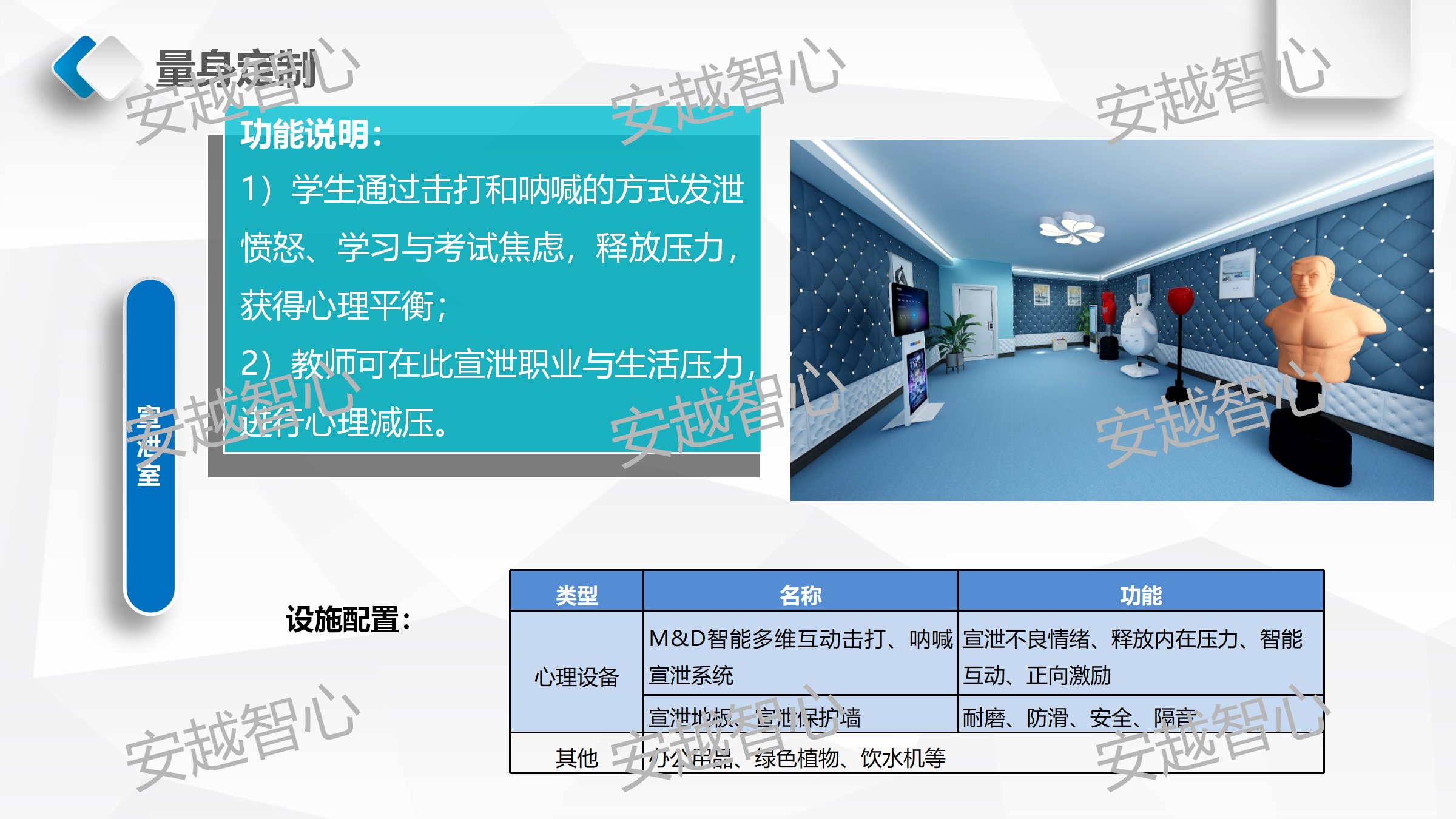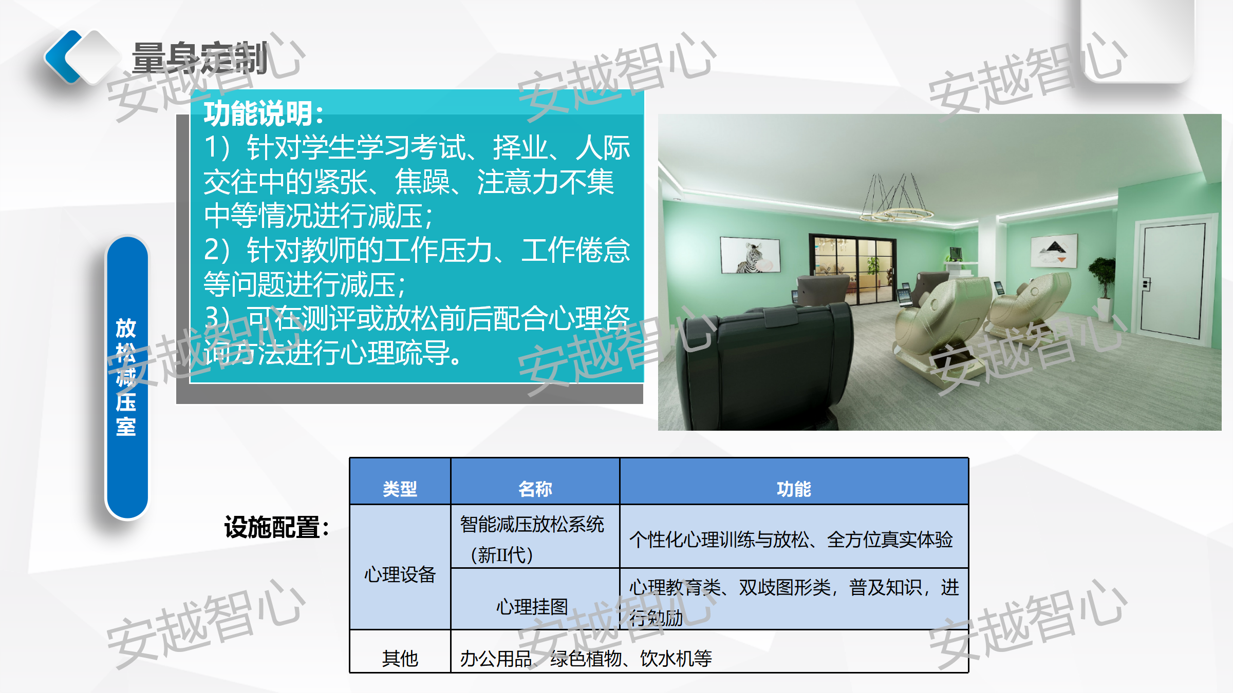 安越智心科技(云南)有限公司,是以促进心理行业发展为宗旨的软件开发及师资培训企业,我们整合行业资源提供高质量、创新的心理健康基地整体解决方案,搭建围绕“互联网+智慧心理+家庭教育”的服务体系,满足不同行业客户的各种需求。我们拥有一支技术娴熟、专业过硬、充满激情的开发团队和心理、家庭教育的专家队伍,同时有着十余年的学校实训室、软硬件设备、信息化的建设及系统集成的建设经验,为更好的服务心理健康教育领域奠定了良好的基础。